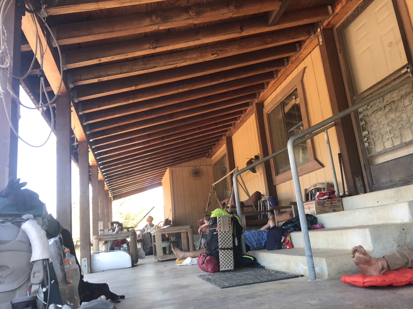 After 12 miles in the sun, taking only a few breaks, I finally arrived to a trail angel’s house called Mike’s Place. It’s also the only place with water for a pretty long stretch. A ton of hikers were there resting in the shade of Mike’s porch and there were banana pancakes that had been made earlier.