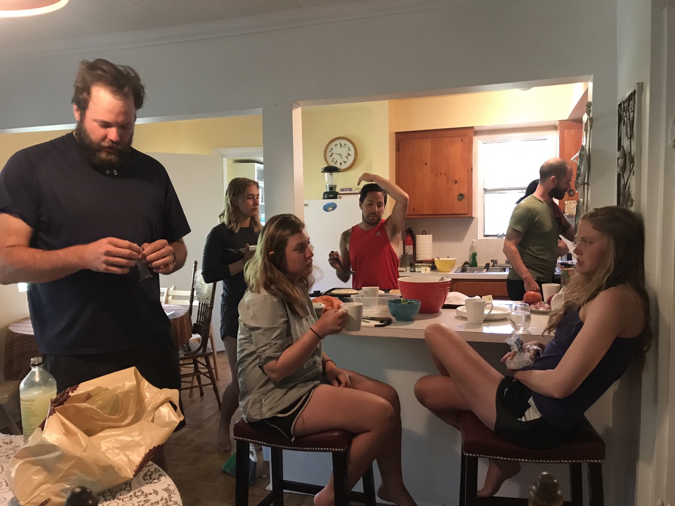 I bought an extra dinner and picked up some new Tyvek from the hardware store (I’d somehow gotten some really thin, cloth-like Tyvek that kept getting tons of cheatgrass and other bits and pieces stuck to it and was tired of carrying half the desert around with me.) As I was doing errands, Karma invited me to breakfast at the Airbnb that Twerk had rented so I headed over there. They made a massive feast and it was a house full of people and it was chaotic and pretty lovely.
