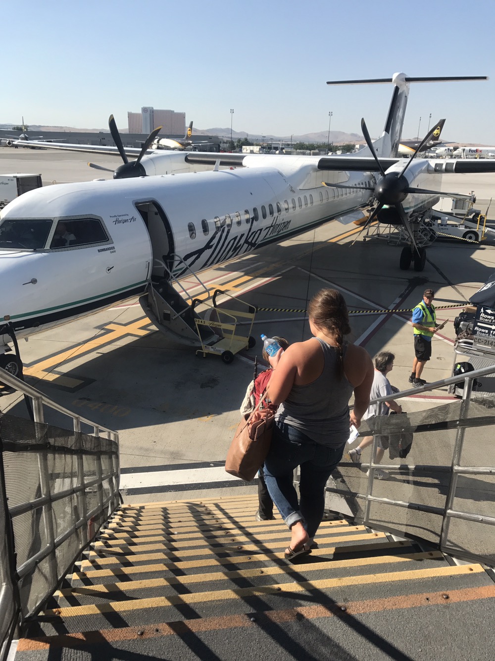 I get a ride from a local and he seems happy to hear I’m not headed in. He tells me the bus to Reno, where I need to get, isn’t running again until Monday. He says the highway is busy, though, and getting a hitch shouldn’t be too hard.