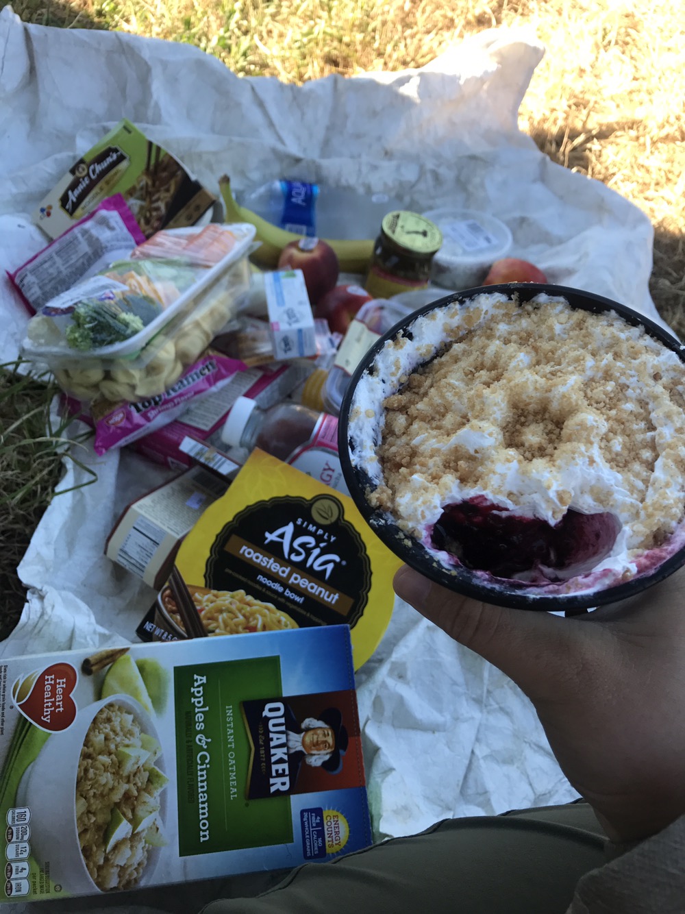 Outside we’re packing our packs and Dexter makes a noise of despair. She’s dropped her marionberry pie all over the ground and her shoe. In that moment, she is probably the saddest hiker in the world.