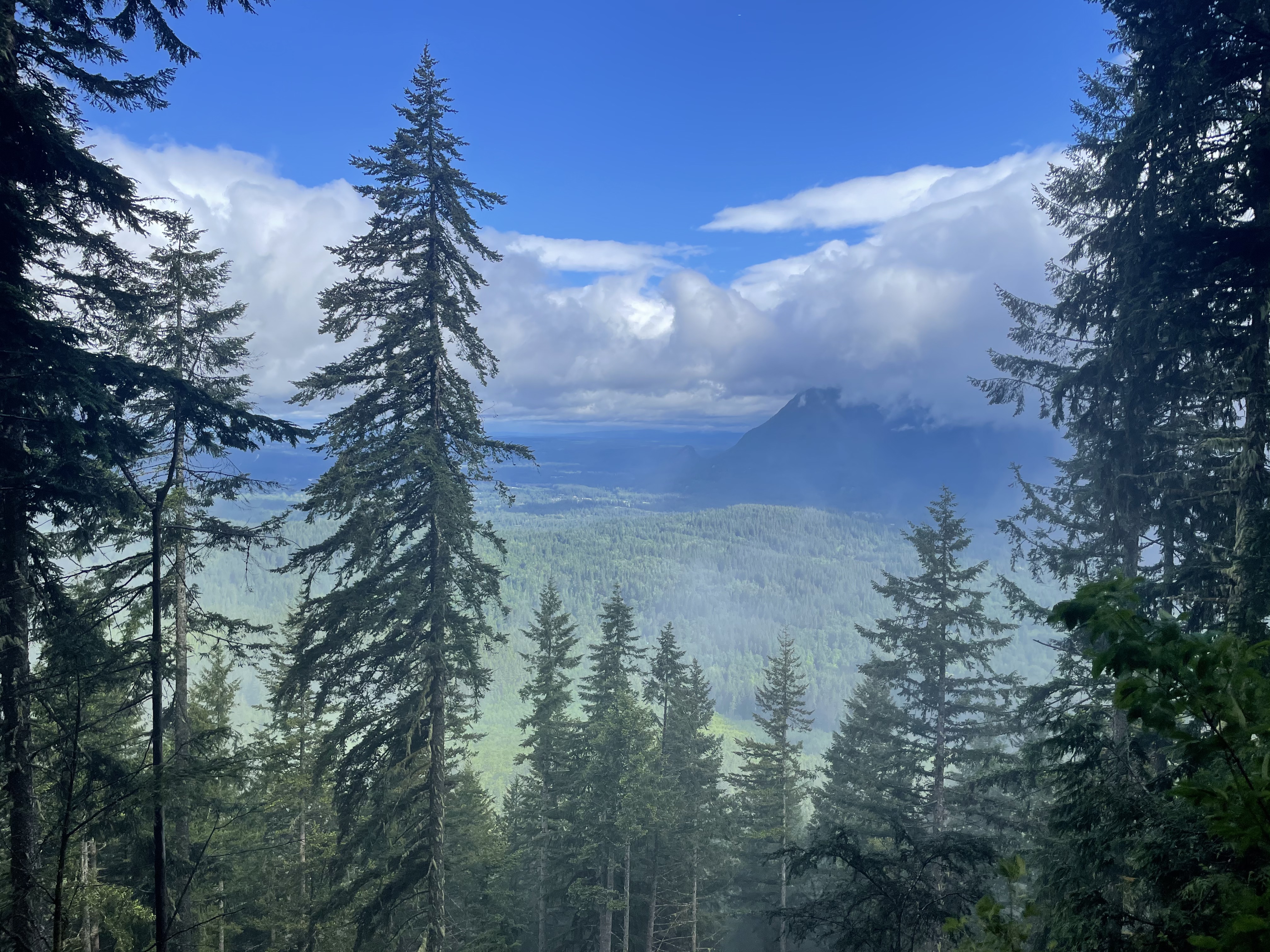 I ran up the Olallie Trail with the goal of going to Mount Washington. The first section is a flat-ish uphill on the Palouse to Cascades Trail (formerly known as the Iron Horse, formerly known as the John Wayne Trail). The trail is primarily used by mountain bikers, which made me a bit nervous, imagining I’d be dodging folks flying down the trail.