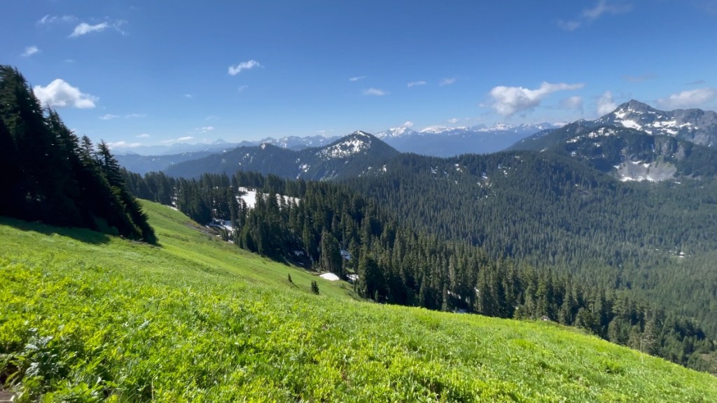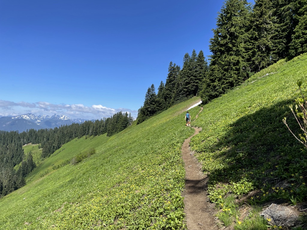 Still, the next day I’d made plans with a friend to go on an 8-mile, 2,500-foot gain hike. I’ve definitely got a blister on my foot, and my knee hurst a little, but mostly my legs feel fine. It’s beautiful, the prettiest hike I’ve done all years, with views of Glacier Peak and Mount Index and several other mountains I don’t know the name of. Another hiker tell us there was a bear ahead but it’s a lot less scary with other people. We don’t see the bear. I eat leftover pizza at the top. My knee and my blister ache on the downhill but I’m going slow and have trekking poles and how bad can anything really be.
