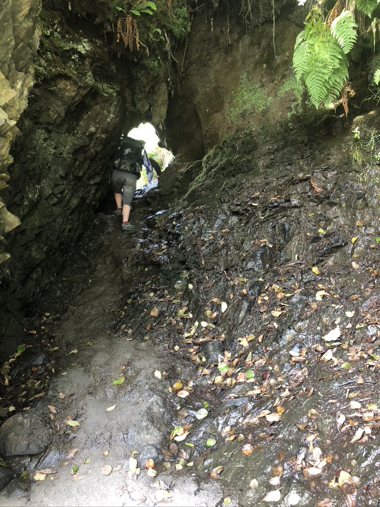 We’re using our hands and choosing routes and laughing. We’re moving so slow. Each step is a serious consideration on the boulders – what is stable, what leads to a dead end, what is sneakily slippery. Toby keeps checking his phone GPS and seeing that we’re barely inching along.