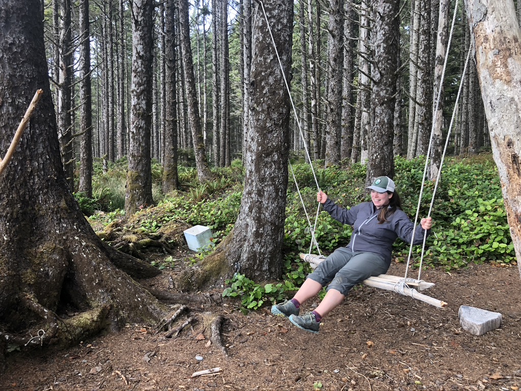 It’s a quick beach walk to reach the trail after Sand Point, with a little bit of tide pool hopping, but then the trails themselves are breezy: hard packed dirt and boardwalk with minimal elevation change. We cruise along, still chatting as thoroughly as day one. As we approach Cape Alava, we heard what sounds like a rowdy party, and as we get closer we realize it’s not people—it’s sea lions barking on an island off the coast.